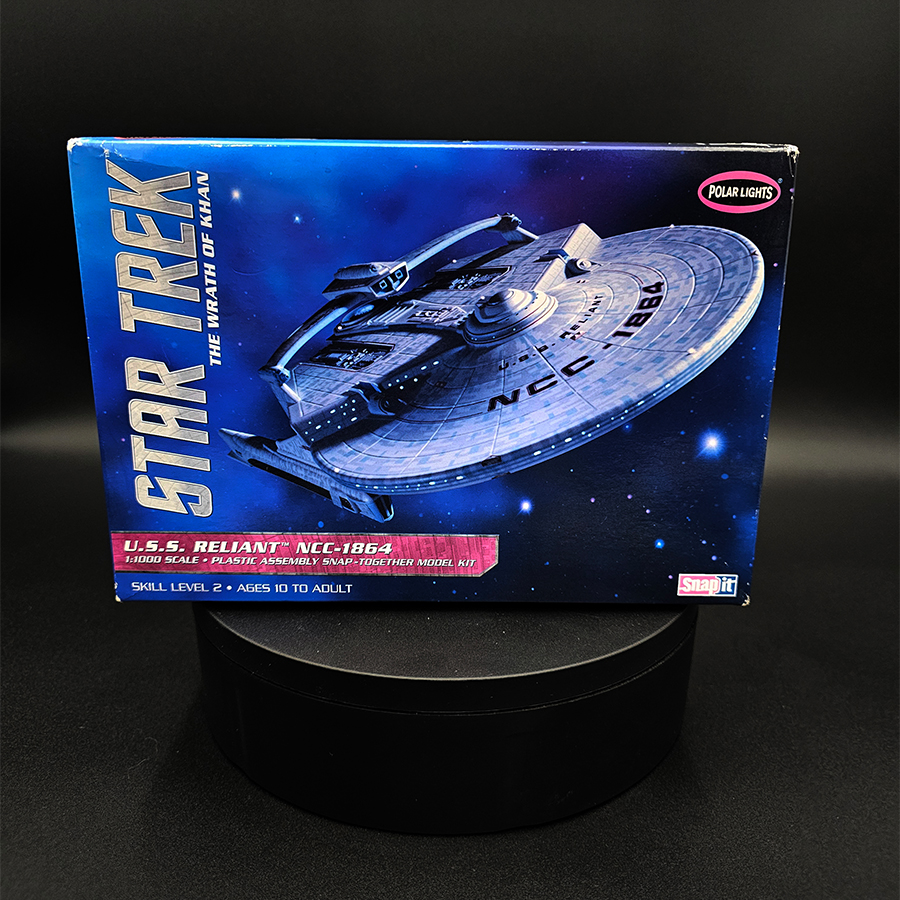 This is a plastic model kit of the U.S.S. Reliant in 1/1000 scale, produced by Polar Lights. The kit represents the iconic Star Trek starship seen in Star Trek II: The Wrath of Khan and is well suited for sci-fi builders and Star Trek modelers.