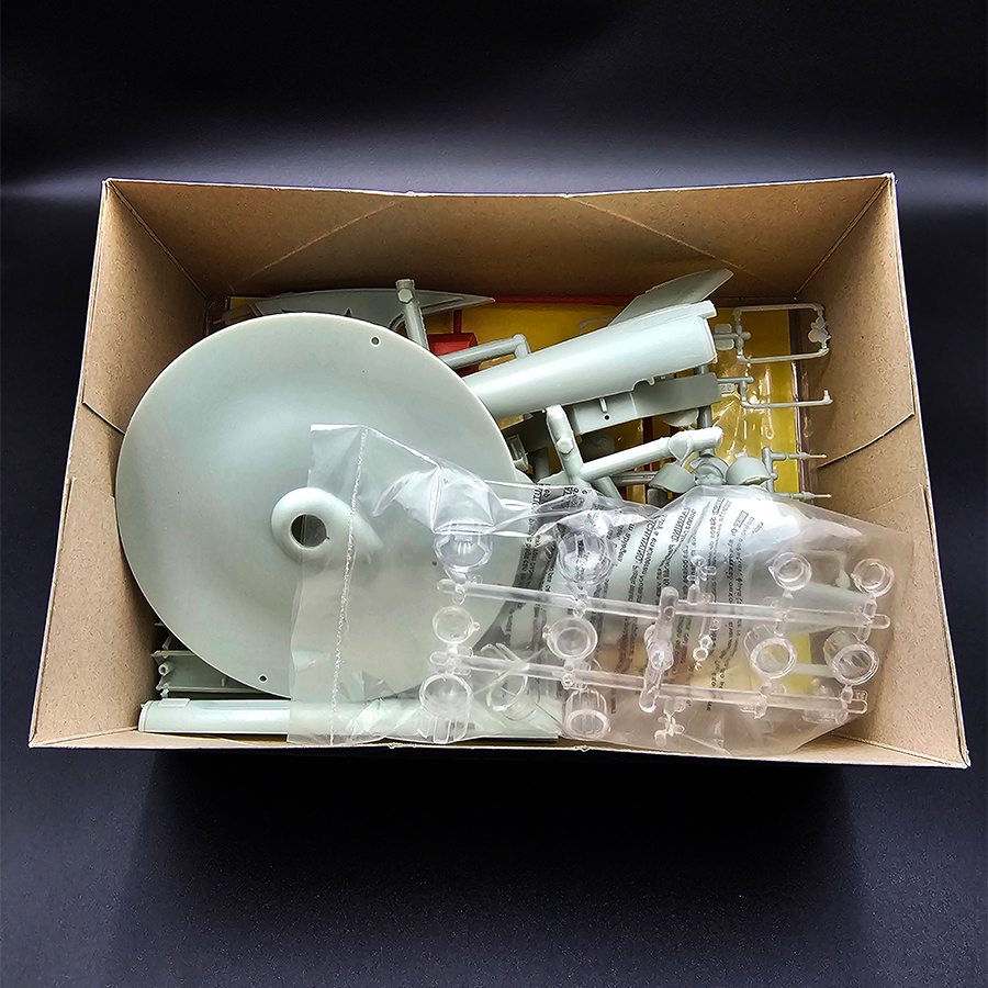This is a plastic model kit of the USS Enterprise with Botany Bay in 1/1000 scale, produced by Polar Lights. The kit represents the iconic Star Trek starship and includes the Botany Bay spacecraft, making it a great option for sci-fi builders and Star Trek modelers.