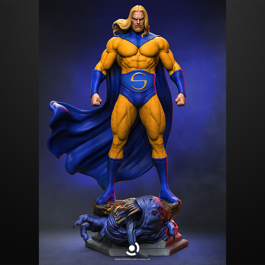 Sentry is larger-than-life hero energy—massive “power pose” anatomy, flowing cape movement, and a clean, iconic suit design that’s basically begging for crisp color separation and high-contrast highlights. The sculpt’s strong shapes and sharp edges take primer beautifully, and the dramatic base (with a defeated creature below) adds a perfect spot for weathering, texture work, and storytelling paint effects.