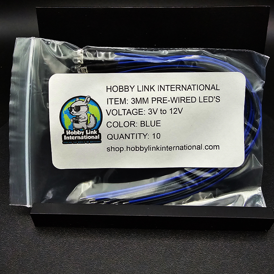 WHAT’S INCLUDED: 10x 3mm pre-wired, pre-resistored blue LEDs (3V–12V compatible).
