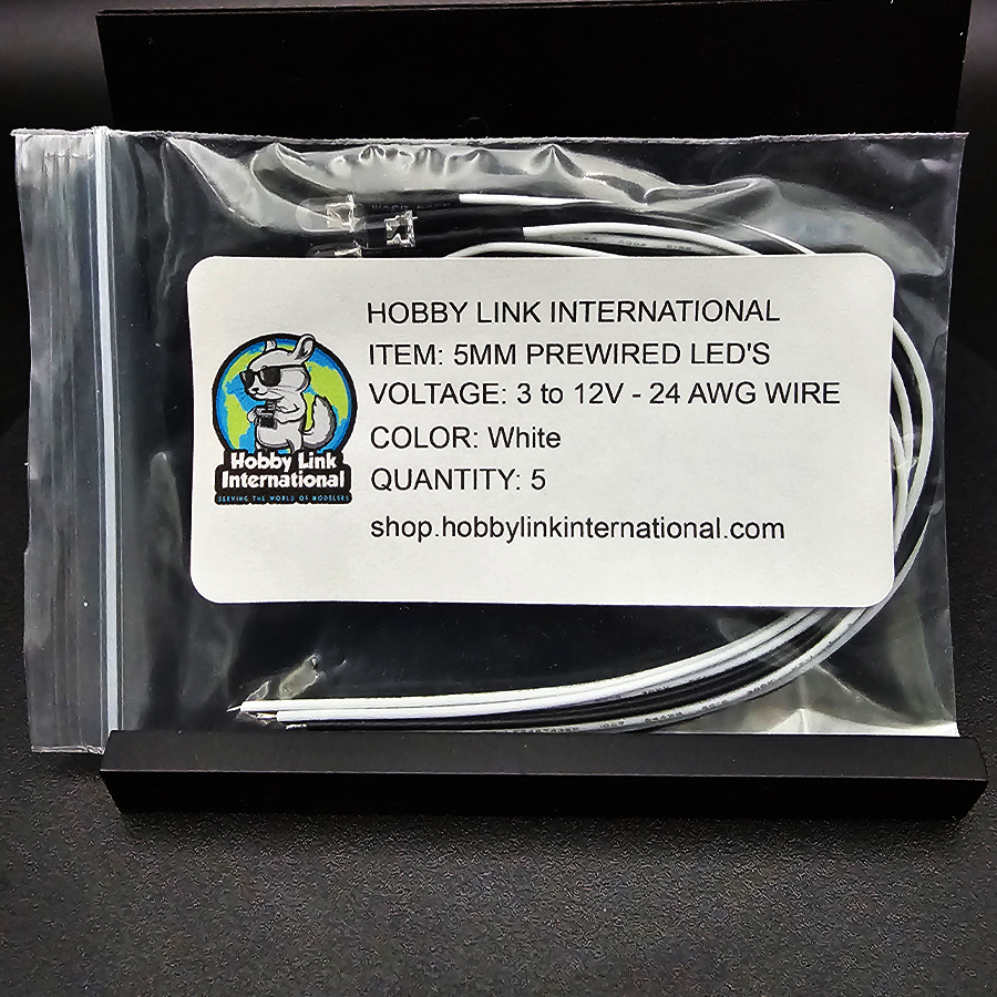 WHAT’S INCLUDED: 5x 5mm pre-wired, pre-resistored white LEDs (3V–12V compatible).