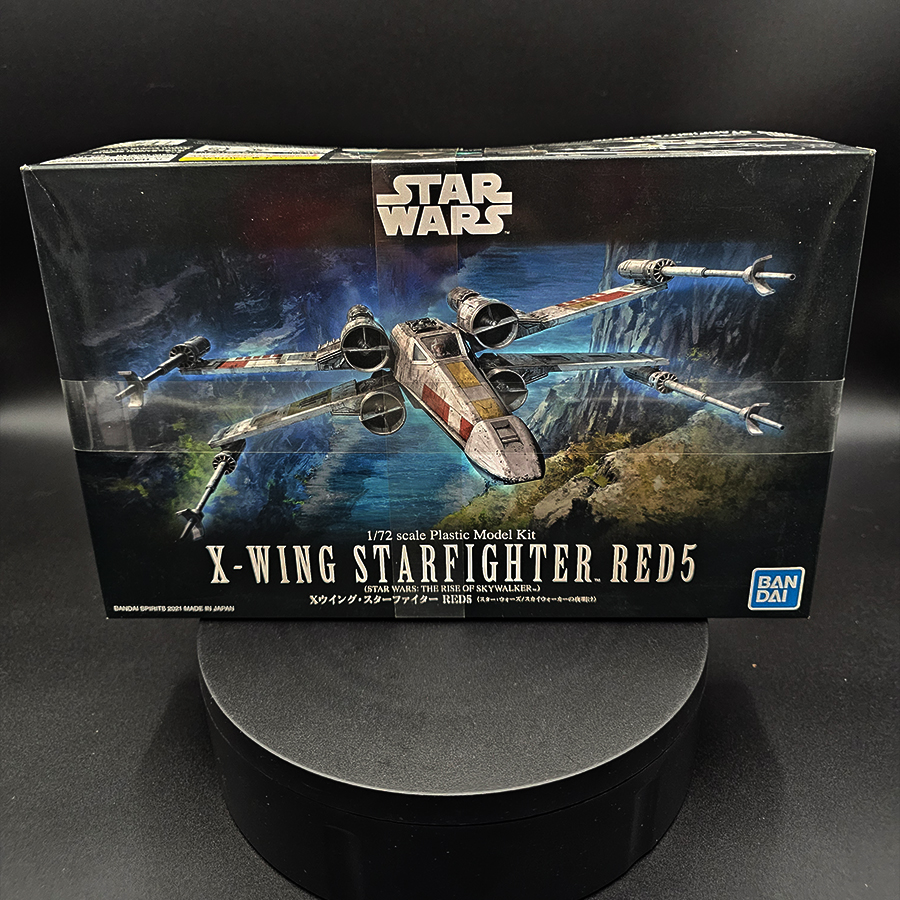Bandai 1/72 scale X-Wing Fighter Red 5 (The Rise Of Skywalker) plastic model kit from Star Wars. A classic display build and a favorite for weathering, panel lining, and battle-worn finishes.
