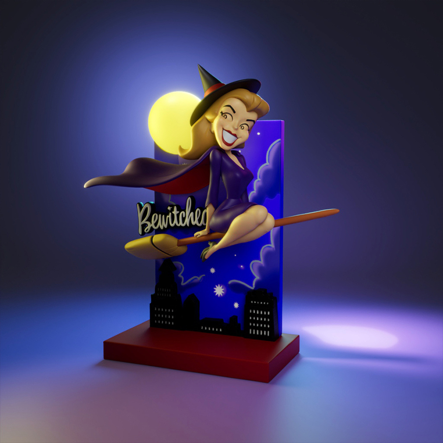 Bring classic cartoon spooky charm to your shelf with this fun, display-ready Bewitched scene—big expression, clean shapes, and a paint-friendly style that’s perfect for smooth color fills, crisp outlines, and subtle cel-shading. The scene-style base, moonlit backdrop, and logo elements give it that “straight off the TV” vibe, making it an instant conversation piece even before paint.