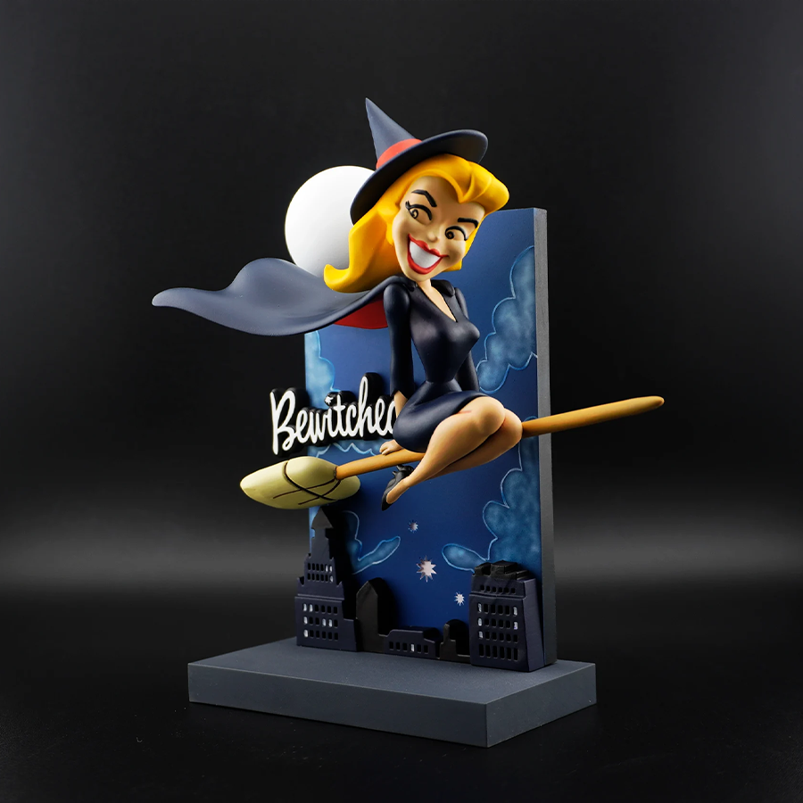 This Bewitched diorama by UEL Winner is a physical resin print produced by HLI3DFX. It’s a classic TV-inspired display piece with a bold, graphic backdrop and that iconic “witch on a broom” silhouette—perfect as a shelf centerpiece and a fun paint project.