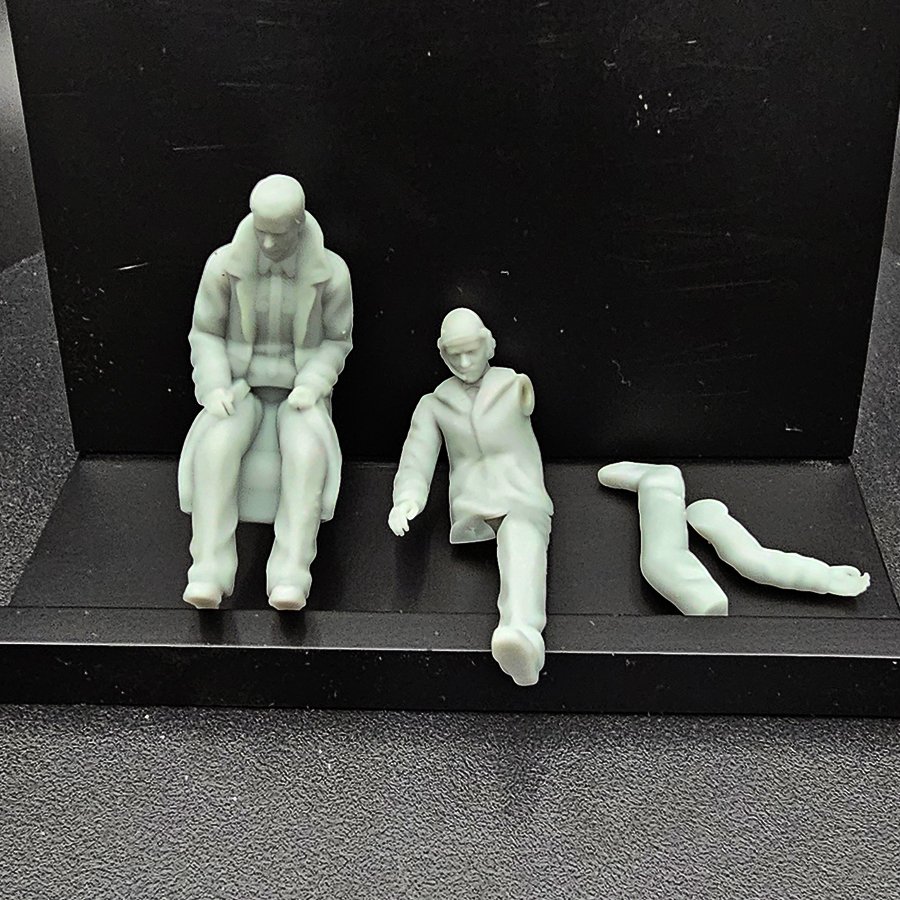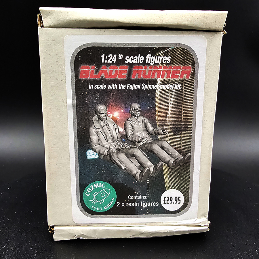 Cozmic Scale Models 1/24 scale Blade Runner seated figure set designed to complement the Fujimi Spinner kit. Ideal for adding life to a cockpit display, open-door scene, or a full street vignette build.