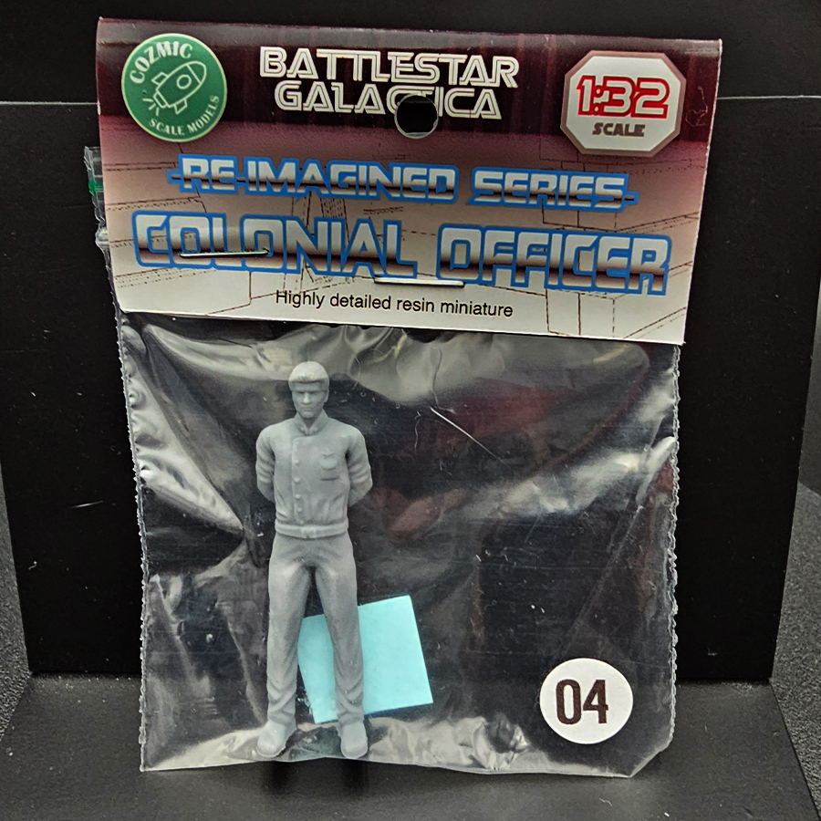 Cozmic Scale Models 1/32 Battlestar Galactica Re-Imagined Colonial Officer figure set. A great character option for hangar deck scenes, command/flight-line displays, or adding life to a modern BSG diorama.