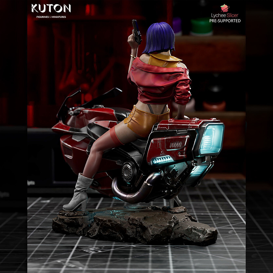 Smooth sci-fi curves, bold attitude, and that sleek bike—this Faye Valentine piece is basically a neon sign that says “have fun painting me.” You’ve got a great mix of clean surfaces for gloss finishes, sharper panel lines for washes, and plenty of little tech details that’ll look insane with subtle edge highlights and tiny OSL pops.