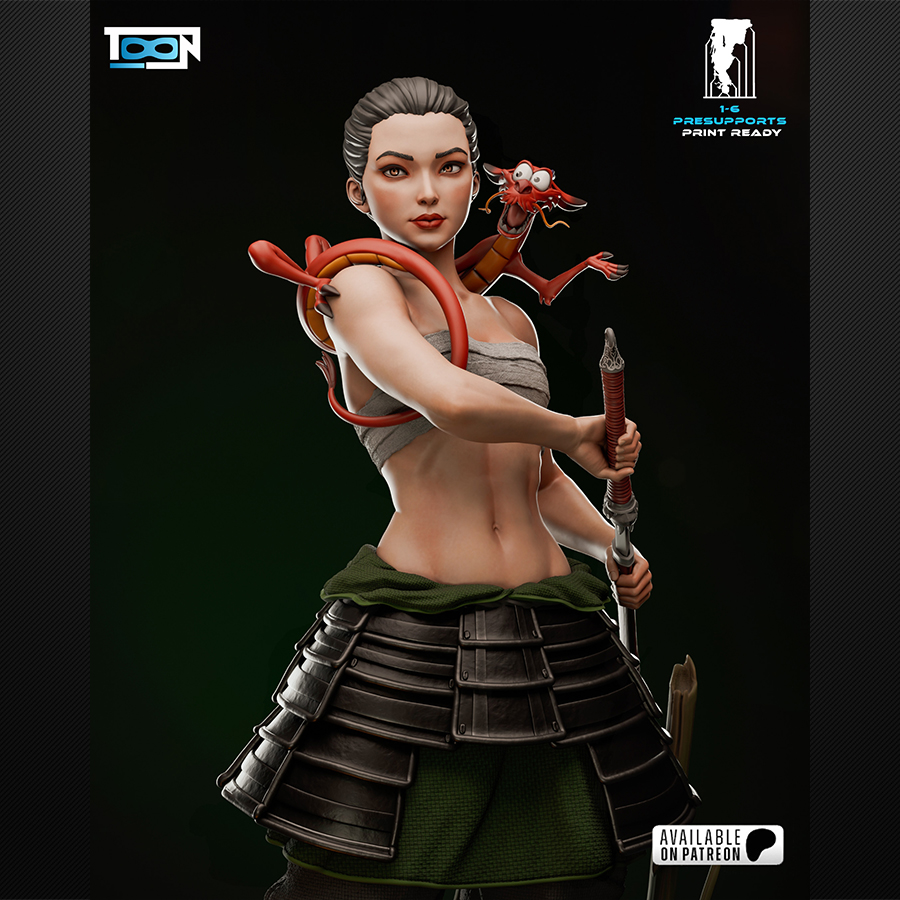 Bring warrior energy to your shelf with Mulan—ready for battle, full of attitude, and packed with paint-friendly surfaces that beg for smooth blends, sharp edge highlights, and bold stylized shading. This kit also includes an alternate head option if you want a more grounded look while keeping the same heroic pose.
