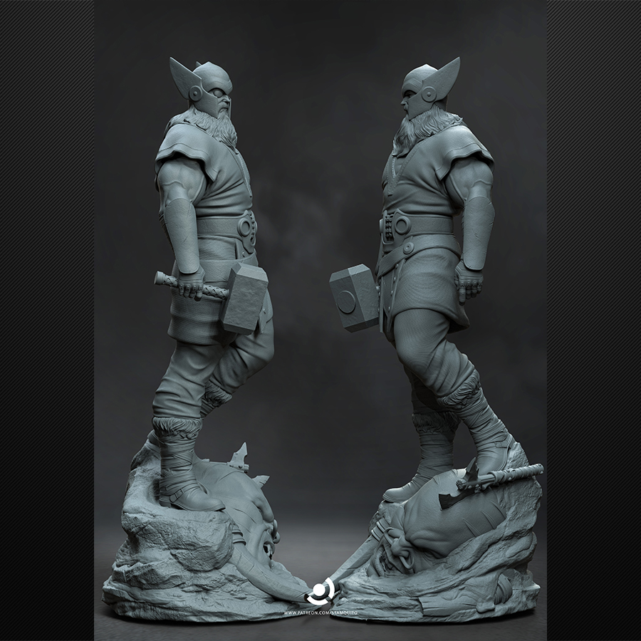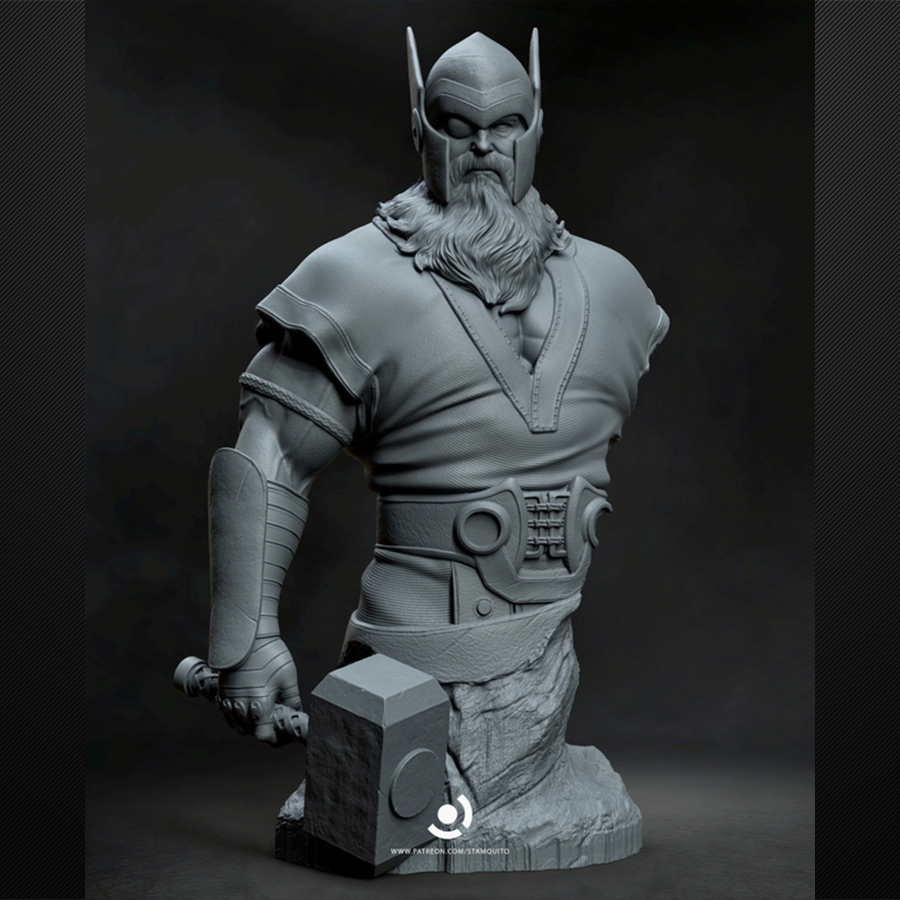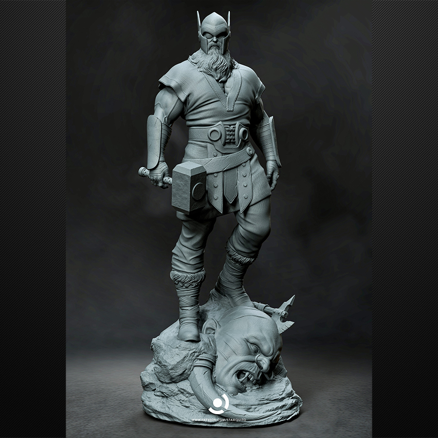 Odin is pure mythic warlord presence—commanding stance, battle-ready armor, and that unmistakable one-eyed, long-bearded silhouette that practically paints itself. The sculpt has crisp edges, bold forms, and layered costume textures that make it ideal for rich leather tones, weathered metals, and dramatic cloth shading. The base adds extra storytelling punch with a defeated giant head beneath his feet—perfect for grime, blood-free battle wear, and stone texture work.
