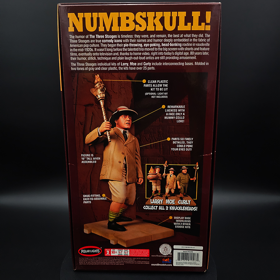 Polar Lights 1/8 scale The Three Stooges plastic model kit bundle featuring Moe (POL840), Larry (POL839), and Curly (POL841). These classic styrene kits make an awesome display trio for comedy fans and modelers who want something different on the bench.