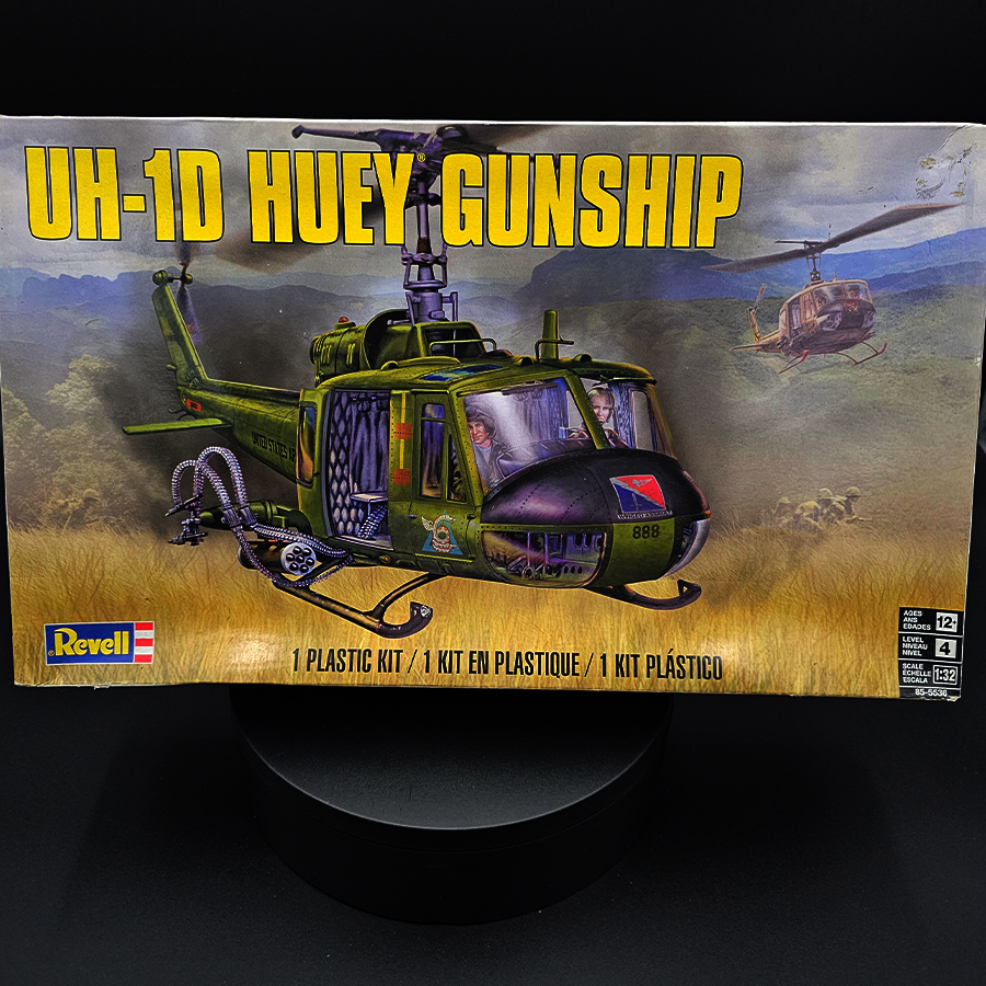 Revell 1/32 scale UH-1D Huey Gunship helicopter model kit. Big-scale rotary-wing cool with tons of detailing potential—perfect for Vietnam-era builds and weathered finishes.