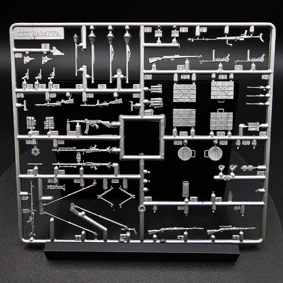 Tamiya 1/35 scale German Infantry Weapons Set. A useful diorama add-on for WWII builds, perfect for stowage, scene dressing, and spare parts.