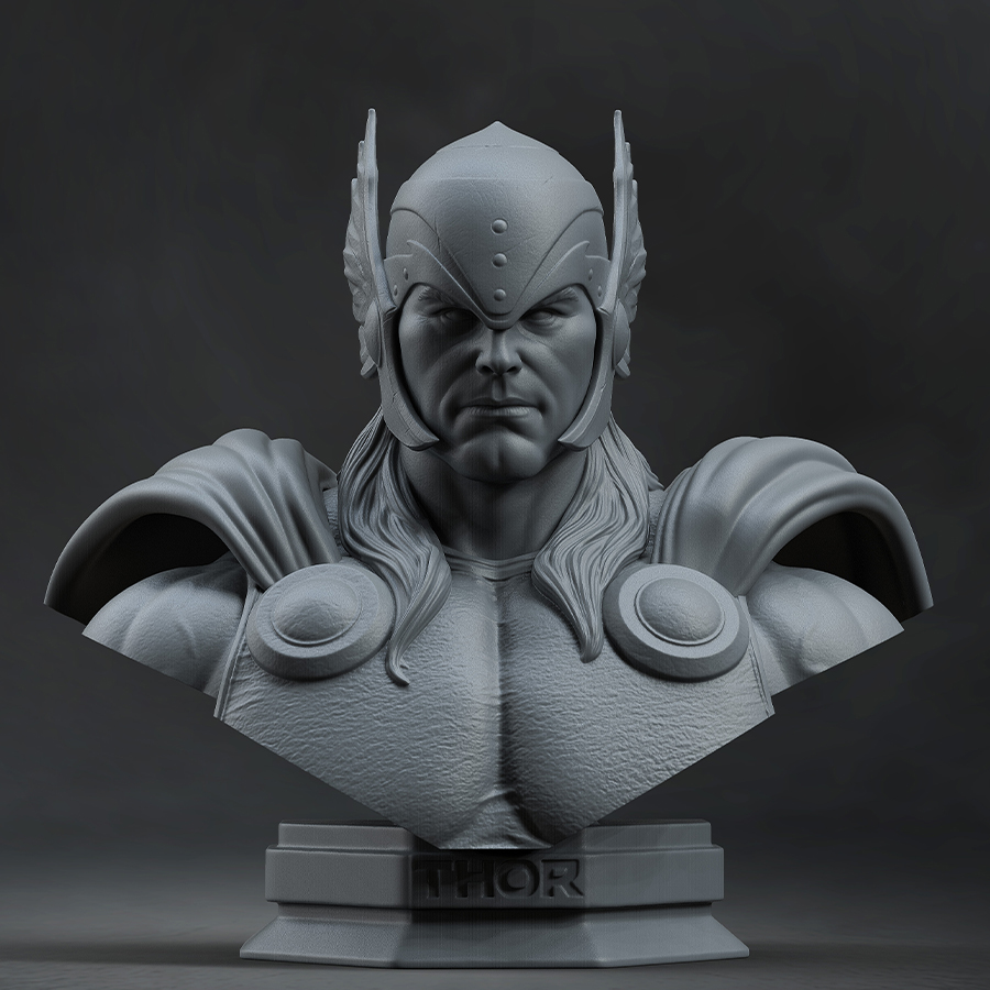 Bring thunder-god energy to your shelf with this bold, heroic Thor sculpt—complete with flowing cape, classic armor detailing, and that unmistakable hammer-in-hand stance. The clean forms and sharp separations make it ideal for crisp metallics, smooth cape gradients, and high-contrast shading across the musculature and costume textures.