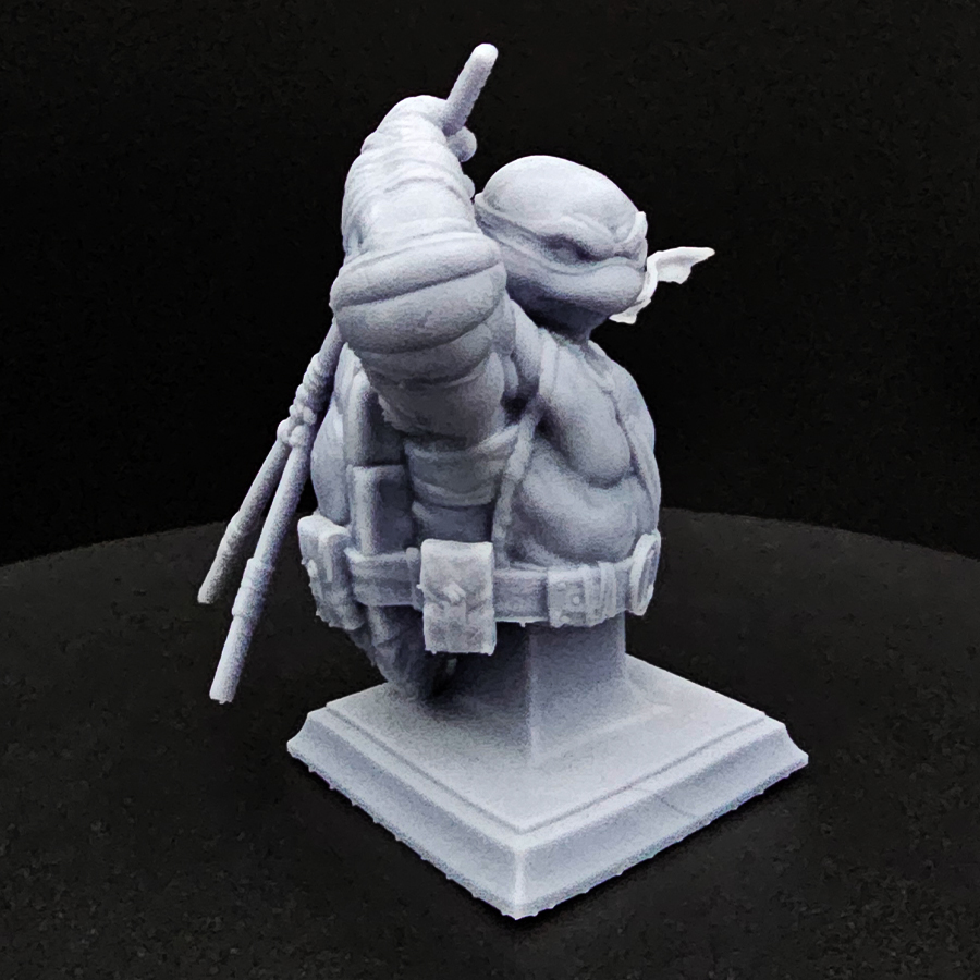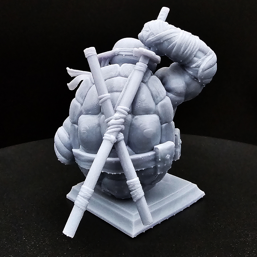 This TMNT Leonardo bust by CA3D is a physical resin print produced by HLI3DFX in 1/9 scale. It’s a classic character display piece with a matching base—perfect for painters who want a bold, recognizable project with strong sculpted forms that take highlights, washes, and weathering beautifully.