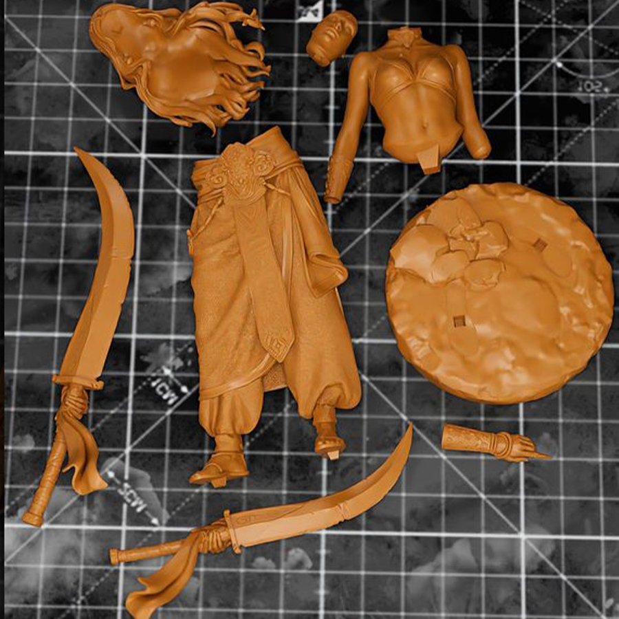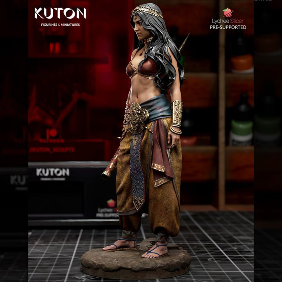 Zahiri brings that deadly-calm warrior vibe—curved blade in hand, flowing cloth, and a confident stance that’s basically begging for high-contrast shading, weathered metal, and rich fabric tones. This one’s got tons of crisp detail without being “busy,” so it’s a really fun paint project.